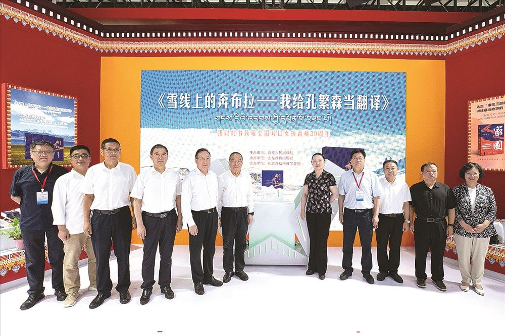 7月27日,献礼全国对口支援西藏30周年的主题出版力作《雪线上的奔布拉——我给孔繁森当翻译》新书分享会在第32届书博会会场西藏展区召开。